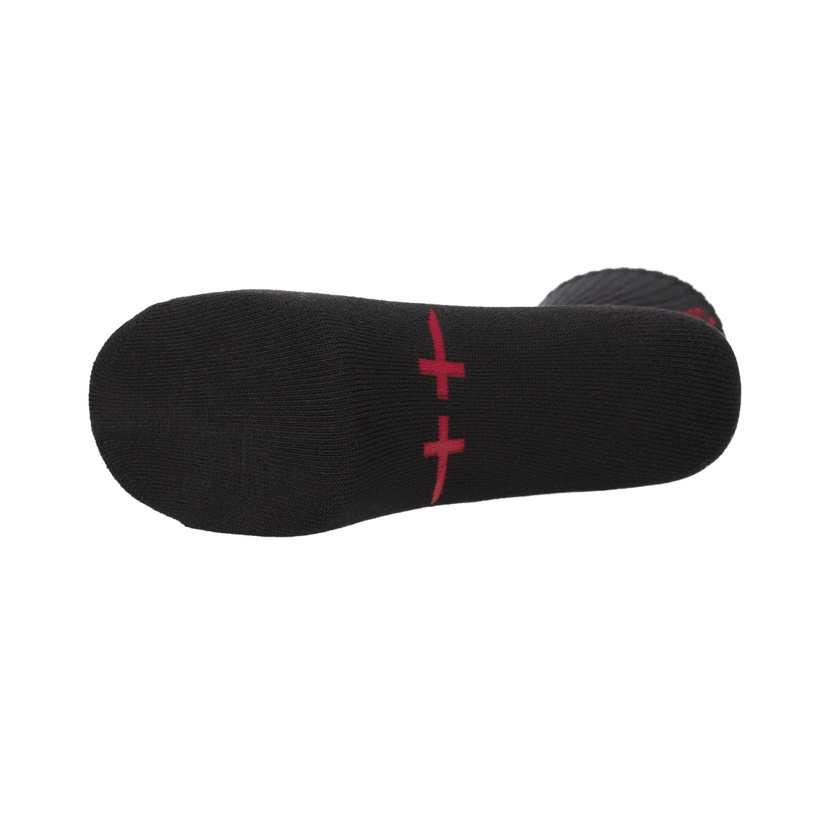 日本製でバランスの良い丈とクラシックなリブ編みがポイントのソックスでサンダル、スニーカーなど、どんな靴とも相性が良いアイテムです。また、サイドに施されたブランドロゴ、足裏に施された剣のロゴが程よくアクセントになっています。