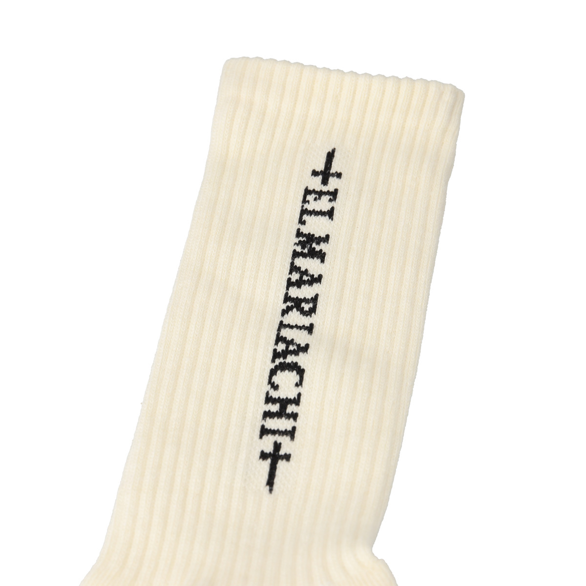 日本製でバランスの良い丈とクラシックなリブ編みがポイントのソックスでサンダル、スニーカーなど、どんな靴とも相性が良いアイテムです。また、サイドに施されたブランドロゴ、足裏に施された剣のロゴが程よくアクセントになっています。