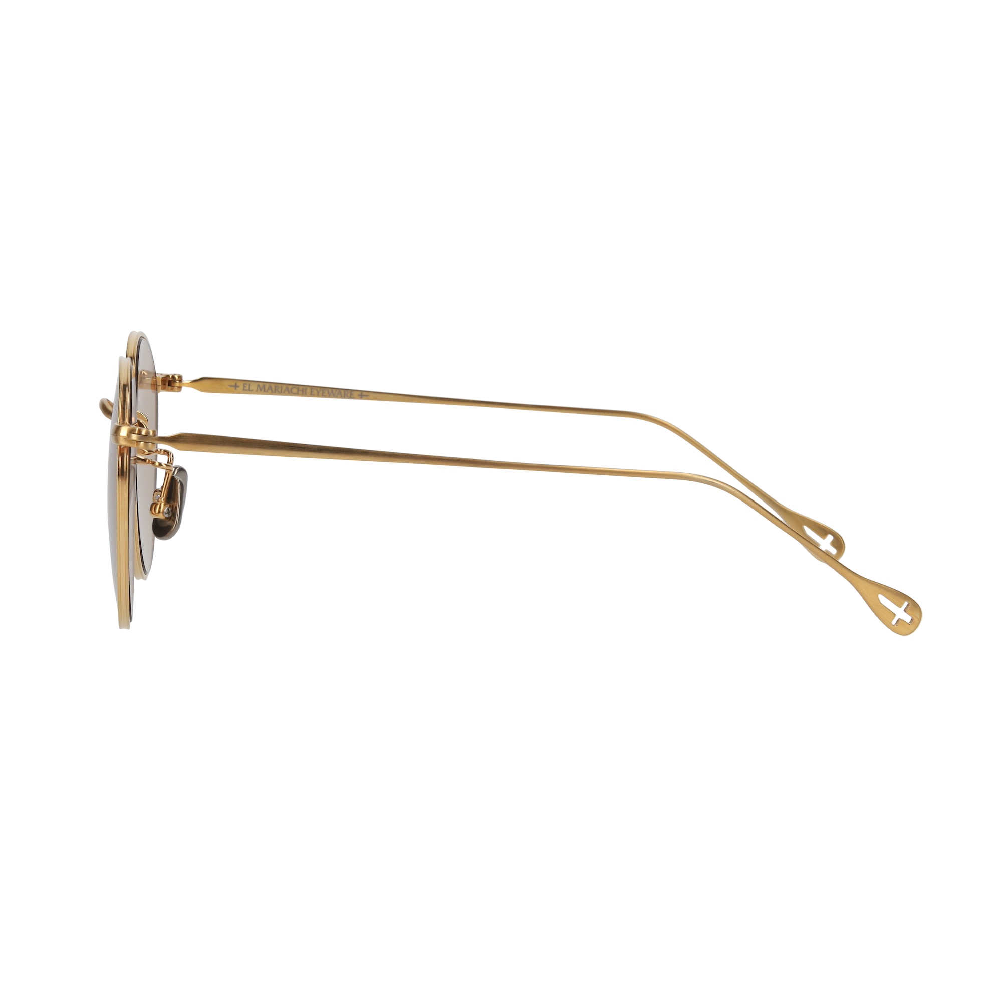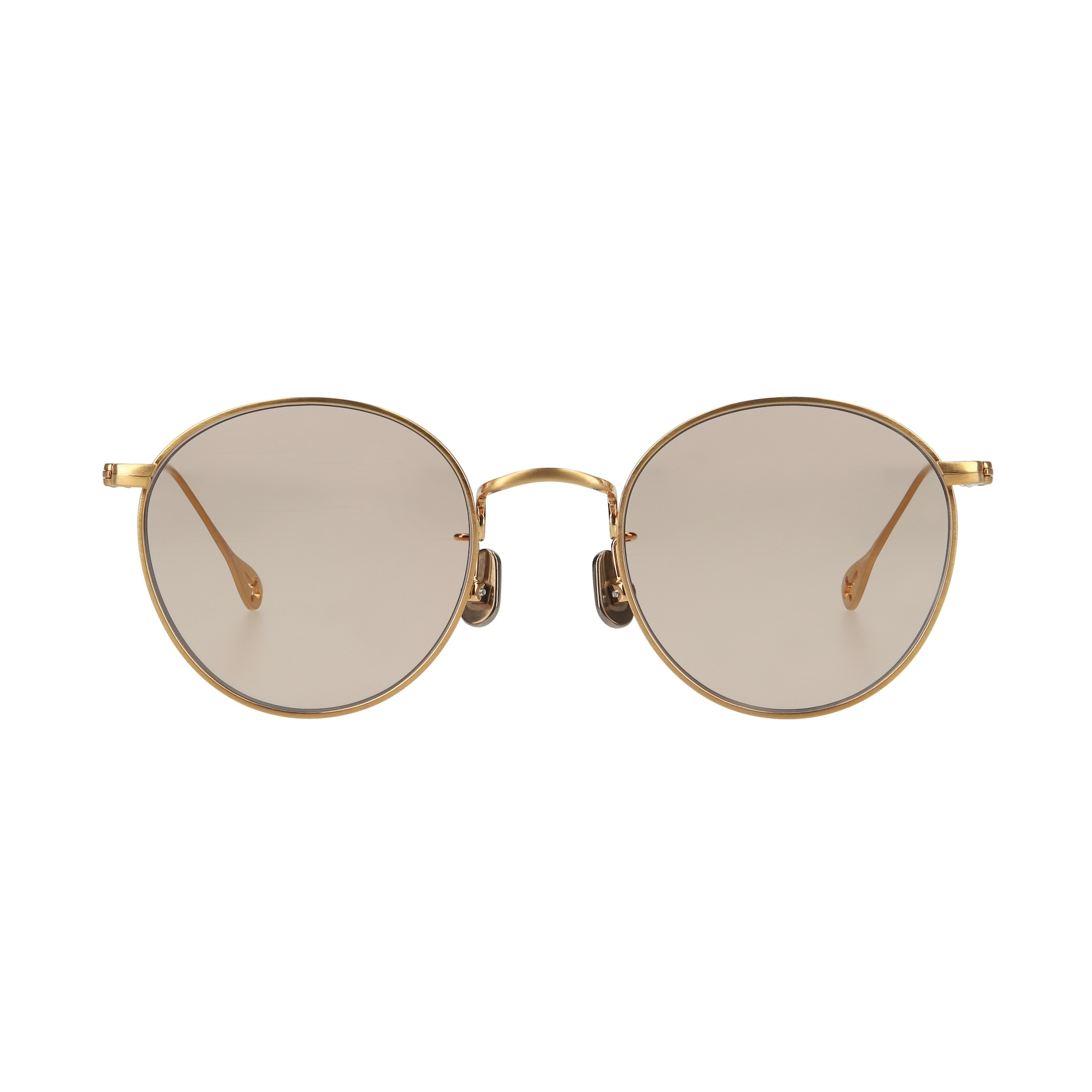 オールチタン製ボストン型のアイウェアです。アレルギーなどの体質に配慮したニッケルフリーを採用。マンレイ山のブリッジ仕様で、ノーズアーム一体型となっており、チタン製のノーズパットにはブランドロゴがレーザーで刻印。テンプルエンドにはブランドロゴが彫られています。