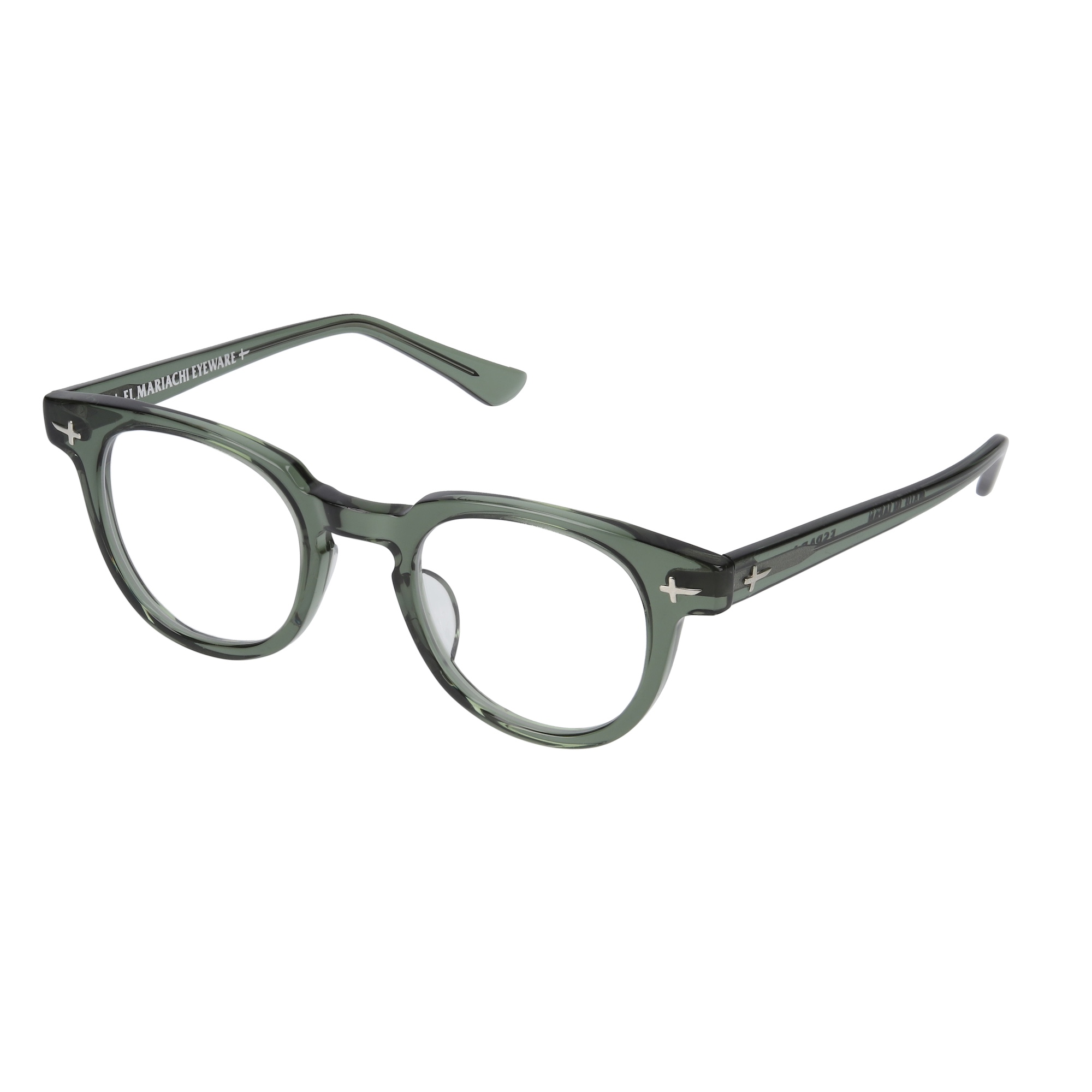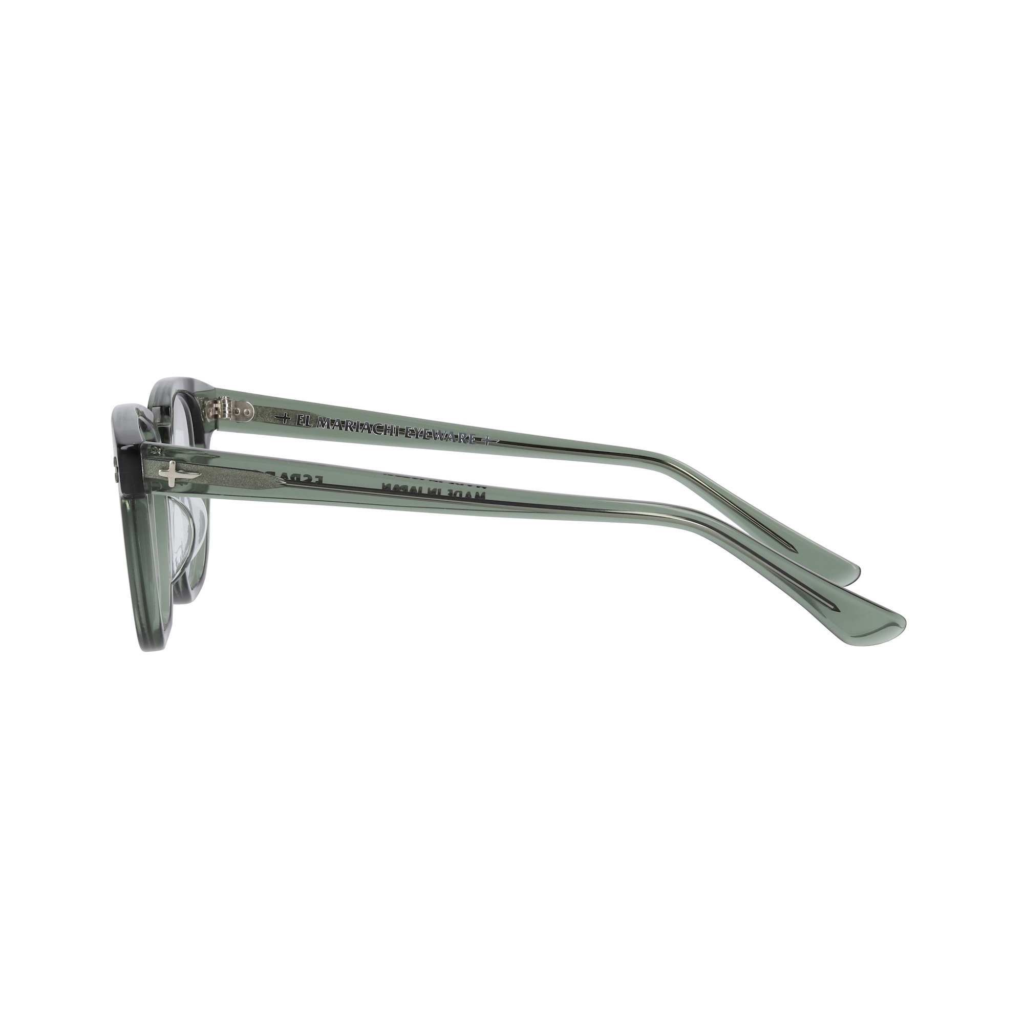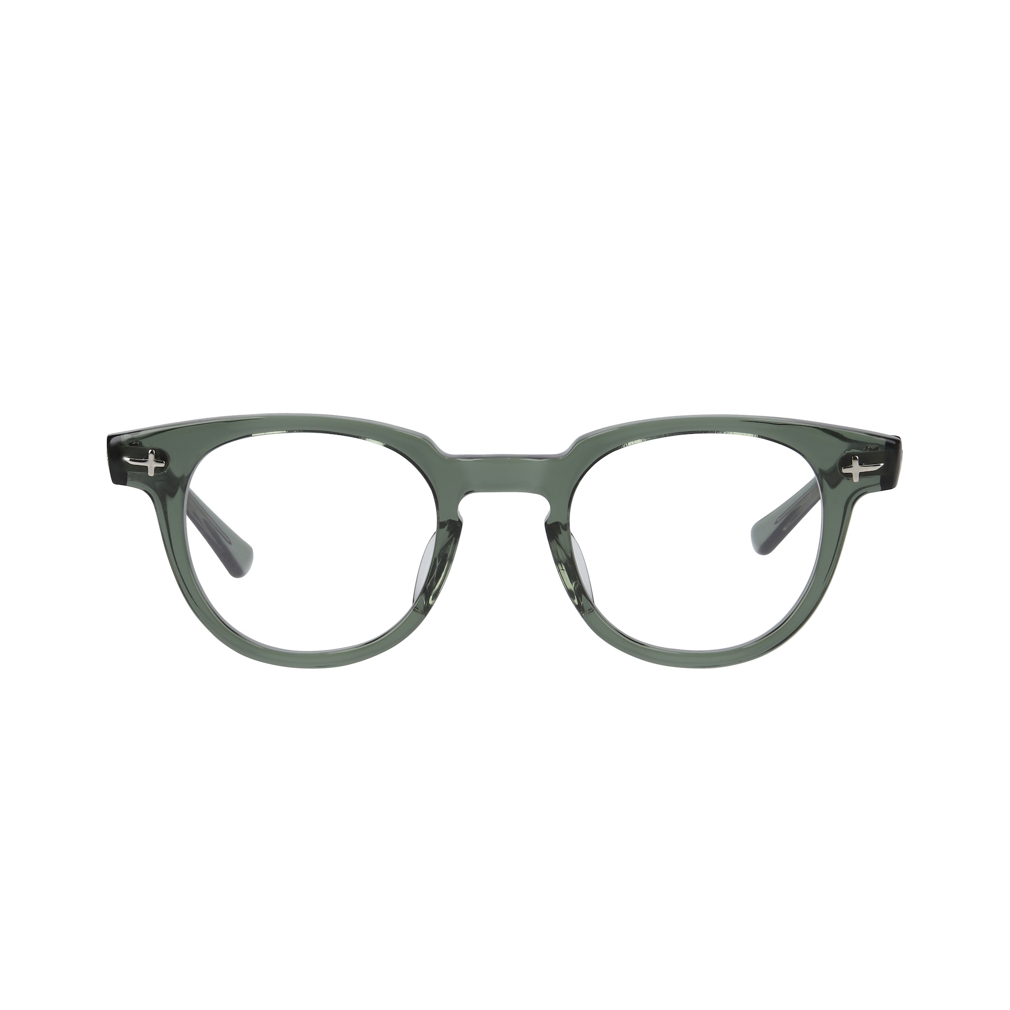 アセテート製のウェリントン型。テンプルに剣飾りを配置しています。幅広のテンプルにオーセンティックなリムのフォルムは、かける人を選ばないデザインです。