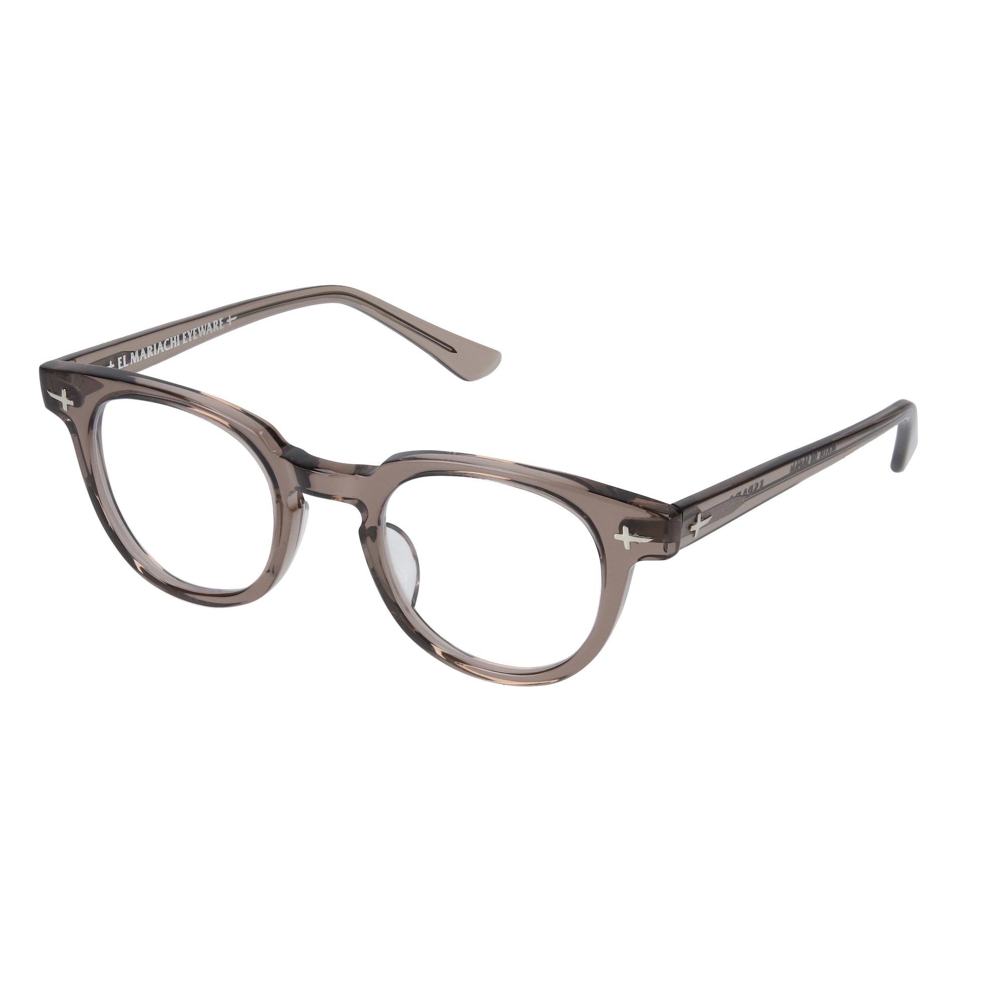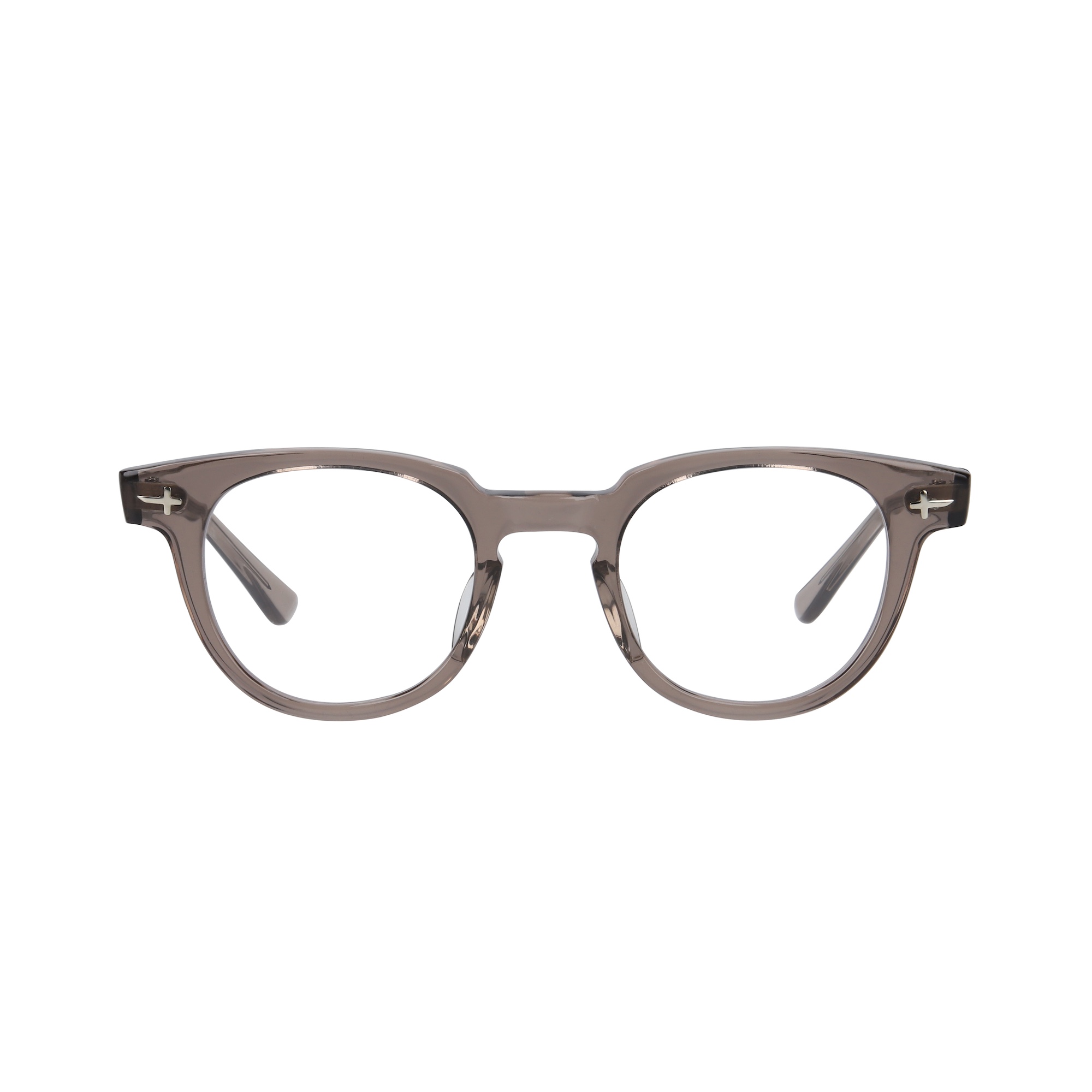 アセテート製のウェリントン型。テンプルに剣飾りを配置しています。幅広のテンプルにオーセンティックなリムのフォルムは、かける人を選ばないデザインです。